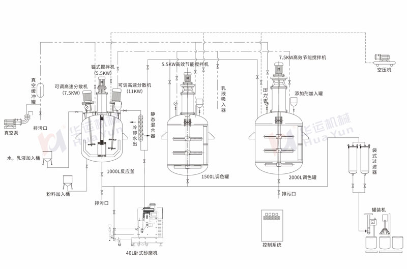 全自動涂料生產線 標準型新材料設備 華運攪拌站 灌裝機 攪拌設備 袋式過濾器 拉缸/反應釜 軟管泵 經典案例 視頻中心